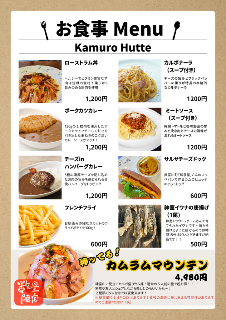 ホテル1F Kamuro Hutteさん より Menu、12月営業のお知らせ